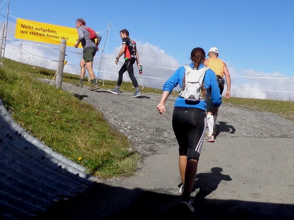 Km40, hier ist es richtig steil. Immer wieder stehen welche neben der Spur und pausieren. Wie ich gestern am Vorjahresvideo gesehen habe, ist hier sogar Andrea Mayr, die Streckenrekordhaltern, gegangen und nicht gelaufen. Dann dürfen wir das auch. Meine Landsfrau ist heute anderenorts zum 5. Mal Berglaufweltmeisterin geworden.