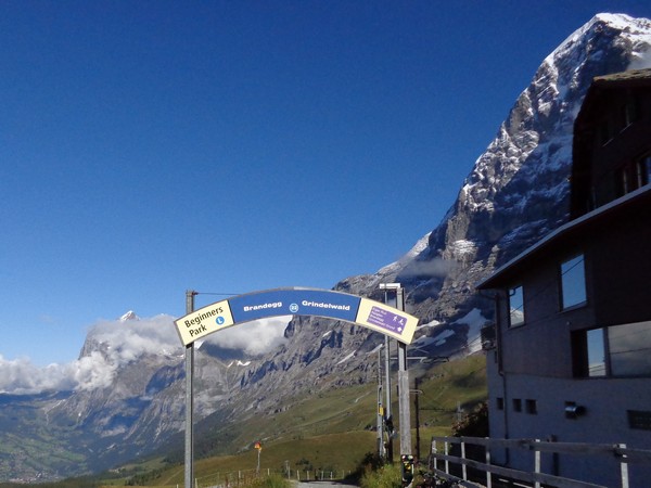 Jungfrau, Mönch und Eiger stehen da, wie auf einem Werbeplakat des schweizerischen Tourismusverbandes, nur eben dreidimensional und echt.