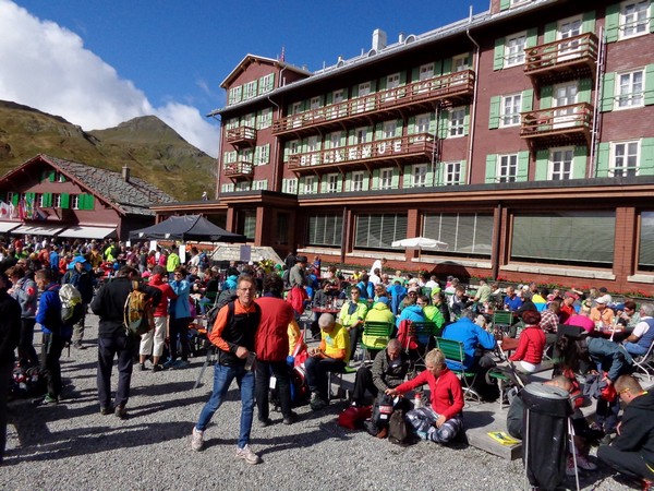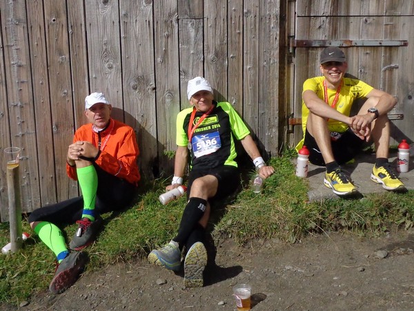 Jubel, Trubel, Heiterkeit, die Leute haben es sich in Liegestühlen bequem gemacht. Oder auf Bierbänken oder liegen in der Sonne. Nachdem ich meinen Kleiderbeutel in der Remise der Bergbahn abgeholt habe, vergönne ich mir einen Hotdog. Die Ziellabe mit Duschen finde ich wenig später. Ich kann die Gegend und die Stimmung richtig genießen.