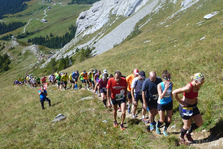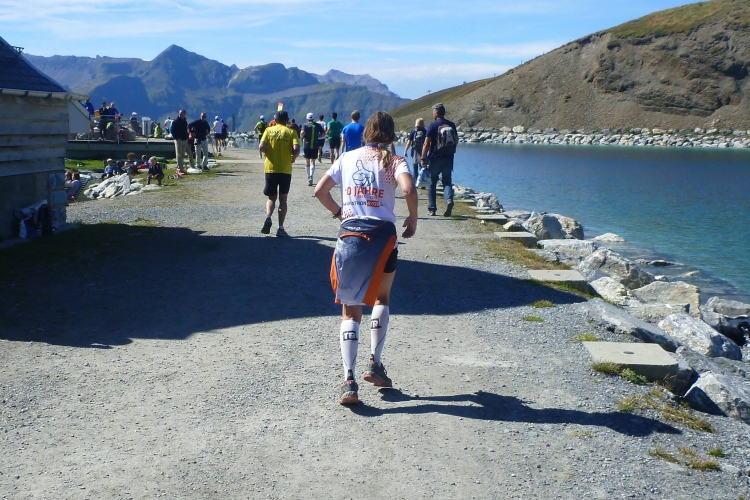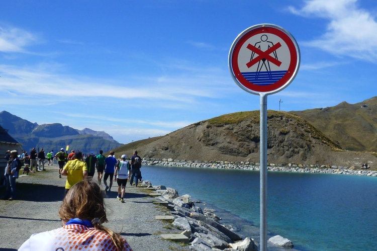 Meine Gedanken sind im Moment ganz woanders: Der Weg ist jetzt leicht zu bewältigen und ermöglicht daher eine ungestörte Sicht auf das Weltnaturerbe. Unglaublich. Bis vorgestern verhieß der Wetterbericht noch Regen. Jetzt ist es sonnig und viel wärmer als erwartet. Ich bin hin und weg: Natürlich gibt es Bergmarathons mit vergleichbaren Anforderungsprofilen, beispielsweise in Liechtenstein. Aber wo auf der Welt hat man einen Blick auf gleich mehrere Viertausender? Mich überwältigen die Gefühle und mir kommen die Tränen. Gottlob passiert mir das nicht im Ziel.