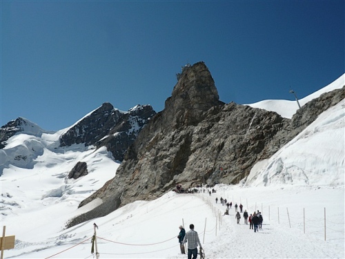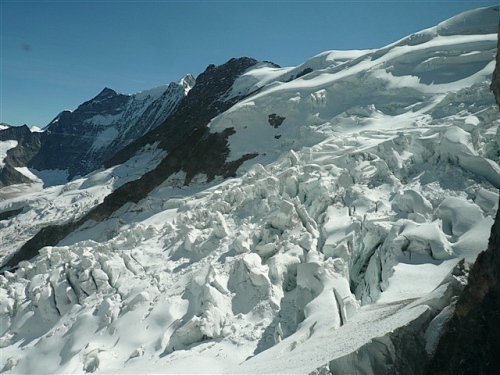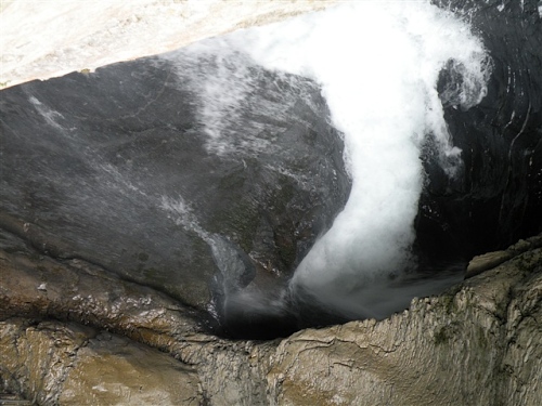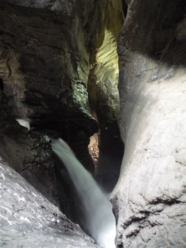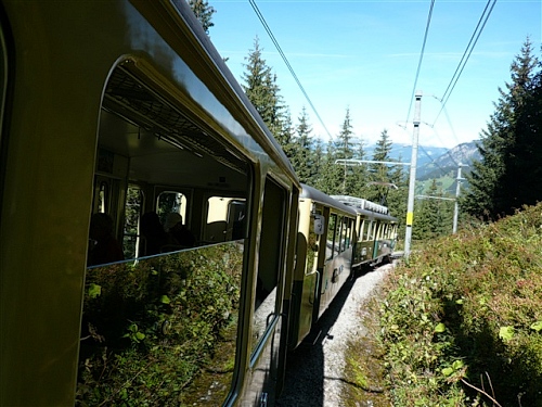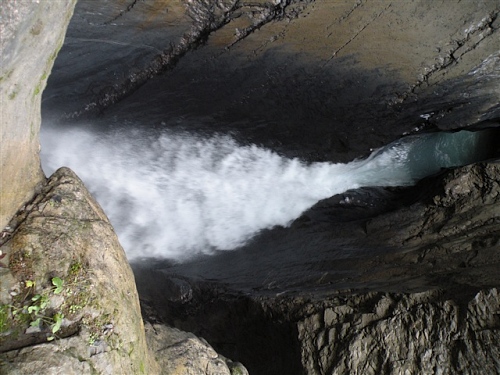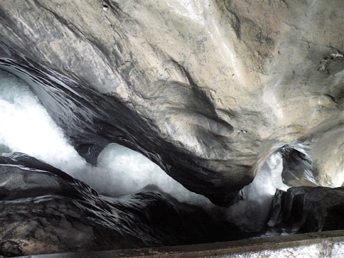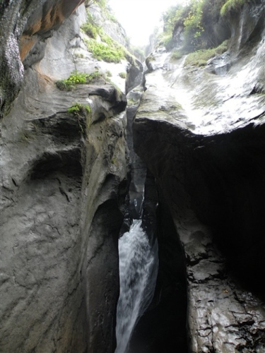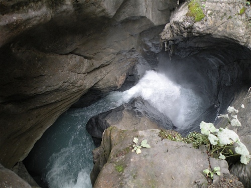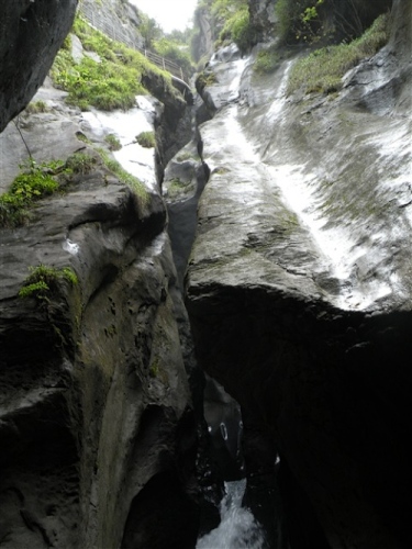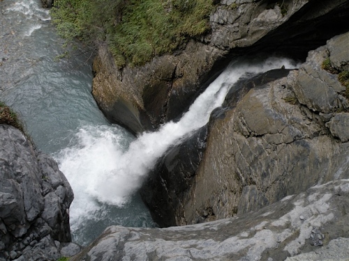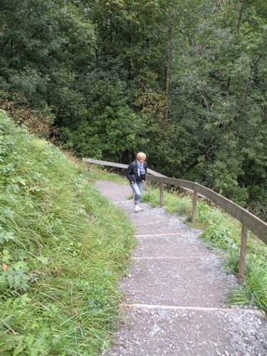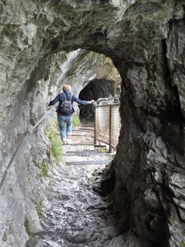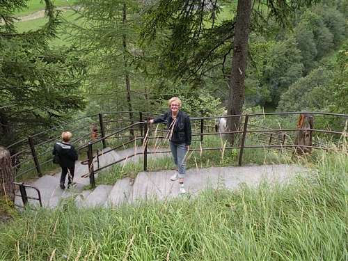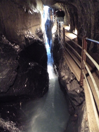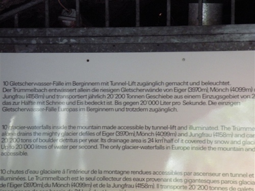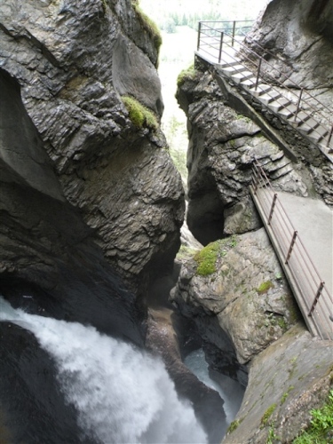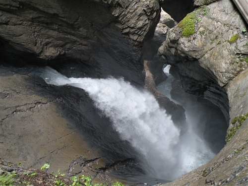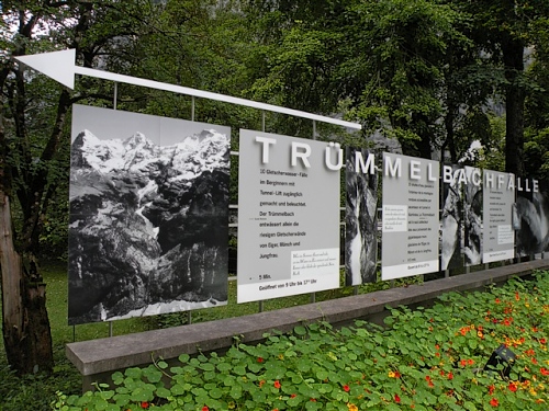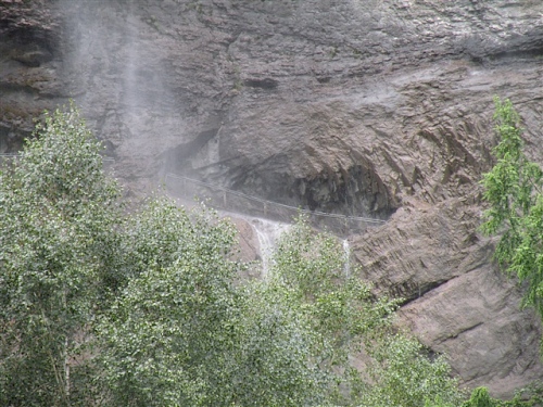 Ein absolutes „Muß“ im Tal sind auch die Trümmelbachfälle, in denen das gesamte Schmelzwasser von Eiger, Mönch und Jungfrau mit Schmackes gen Tal stürzt. Man kann mit dem Aufzug hochfahren und dann heruntergehen, diesen aber auch verweigern. Der scharfe Blick meiner Gattin beeindruckt mich wenig und so wird, jede Möglichkeit zum Zusatztraining nutzend, tapfer hochgestiefelt. Wir sind sehr zufrieden mit unserer Entscheidung, hier und nicht in der Stadt Interlaken zu wohnen.