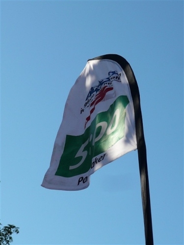 Neben mir stehen Jörg, Chef des Rennsteiglaufs, und der ebenfalls laufende Bürgermeister der Stadt mit dem „schönsten Ziel der Welt“ und ich verspreche beiden, mir im nächsten Jahr kurz vor dem Lauf keine Zehe zu brechen. Der Zugläufer für 5 Stunden plant den Halbmarathon für etwa 1:45 bis 1:50 Std., wie er mir sagt, und wird daher wieder schleunigst verlassen, so nett er auch ist. Das wird für uns in Anbetracht des Gesamtpakets ganz klar zu schnell werden. Die Pacer haben übrigens richtige Gestelle am Rücken, an denen sie ihre Markierung hoch in den Himmel tragen, so etwas habe ich noch nicht gesehen und das Bild erinnert mich fast an unsere Fahnenträger im Fronleichnamsgottesdienst.