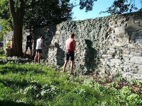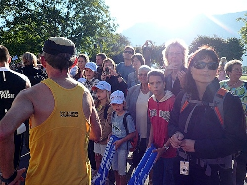 Zeitziel habe ich natürlich gar keines, wie sollte ich auch bei der Premiere auf dieser für mich schweren Strecke. Also ist Ankommen in Würde das Gebot der Stunde. Natürlich – ich habe ja mal in die alten Ergebnislisten geschaut. Und gesehen, daß diejenigen, die für die erste Hälfte um die zwei Stunden gebraucht haben – eine für mich realistische Größe bei bis dahin „nur“ 300 Höhenmetern -, am Ende bei um die fünfeinhalb Stunden ankamen. Klar, nur die wenigsten davon werden auch unterwegs fotografiert haben und am Ende erwarten uns ein paar Stau-Kilometer. Also halten wir es wie Kaiser Franz: Schau’n mer mal.