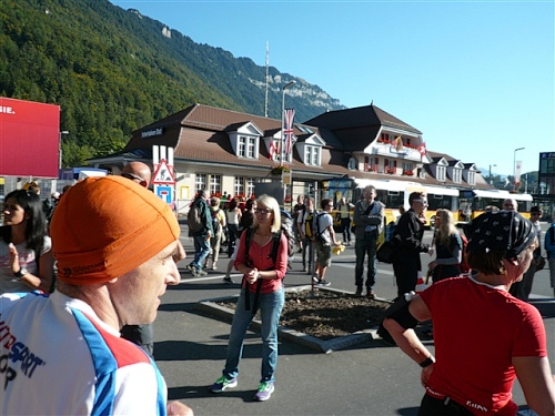 Am Freitag sind wir bei den ersten, die sich die Startunterlagen im Festzelt auf der sog. Höhematte (eine große Wiese) in Interlaken abholen. Aufgrund der angekündigten, problematischen Parkplatzsituation in der Stadt haben wir den Zug von Lauterbrunnen genommen, eine weise Entscheidung. Wieder zurück, vertreiben wir uns unter stahlblauem Himmel die Zeit beim Planschen im kleinen, geheizten öffentlichen Schwimmbad, umgeben von einem Rundum-Bergpanorama. Das Leben kann manchmal ganz schön hart sein.