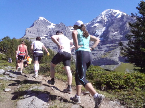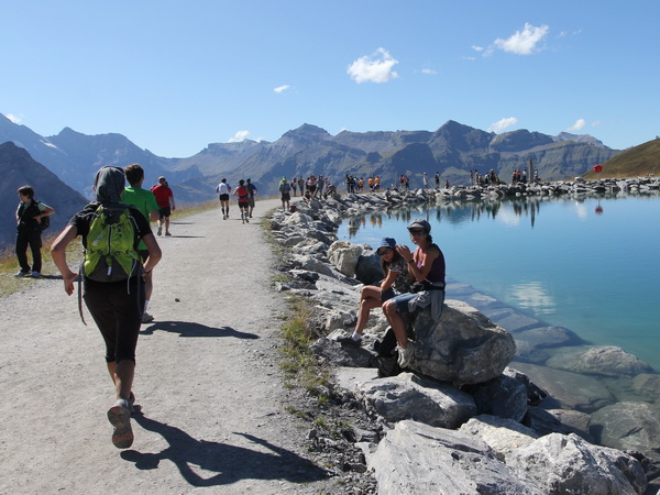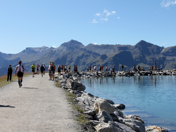 Am schmalen Übergang zur Kleinen Scheidegg liegt wie jedes Jahr Schokolade bereit. Warum verläuft die nicht in der prallen Sonne? Wer solche Sorgen hat, dem geht es gut. Trotzdem lasse ich mir von den zahlreichen Händen über die Felsen helfen. Unten sieht man den türkisfarbenen See und das Ziel. Ich sehe Tränen in den Augen einer Läuferin. Sie kann’s nicht glauben. Sie wird es schaffen.