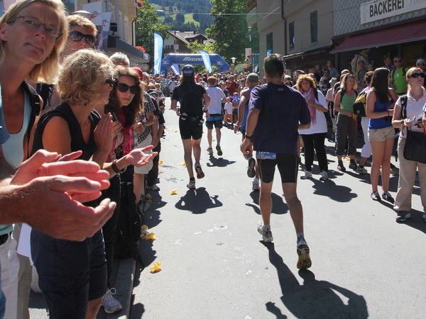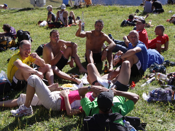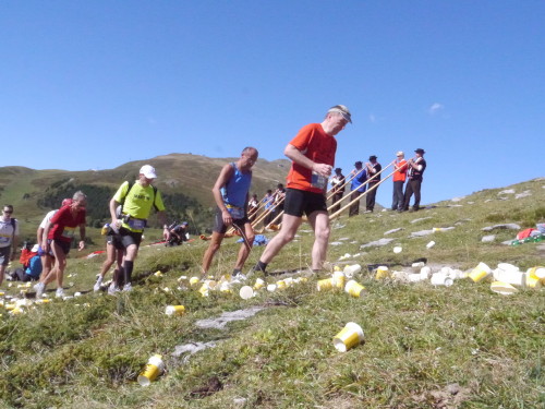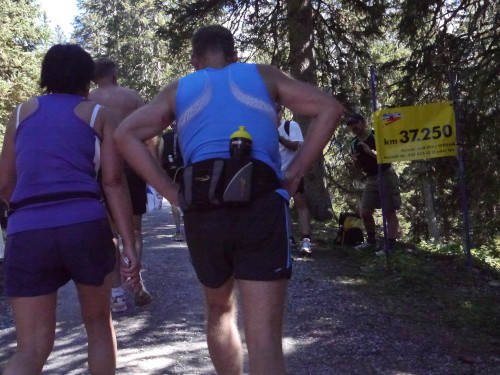 Spätestens jetzt muss mal was zur Verpflegung gesagt werden. Sie ist einfach nur vorbildlich. 12 Verpflegungsstellen sind eingerichtet. Es gibt alles: Wasser, Iso, Bouillon, Cola, Bananen, Riegel, Gel, Magnesium, Salz und mehrmals sogar Massagen. Und das auch an den unzugänglichsten Stellen. Der Aufwand ist gigantisch. Daran muss man denken, wenn man angesichts des Startgeldes die Stirn runzelt. Denken muss ich auch an die Helferinnen und Helfern. Kein Lauf kann so schwer sein, dass ich diesen Dienst einer aktiven Teilnahme vorziehen würde. Ich danke euch.