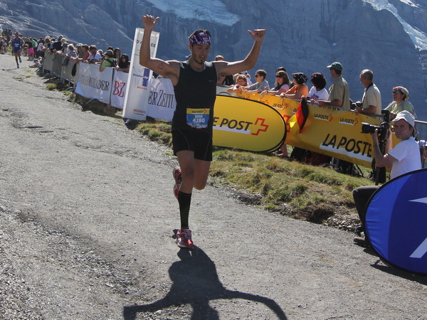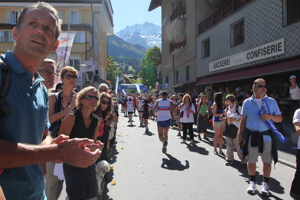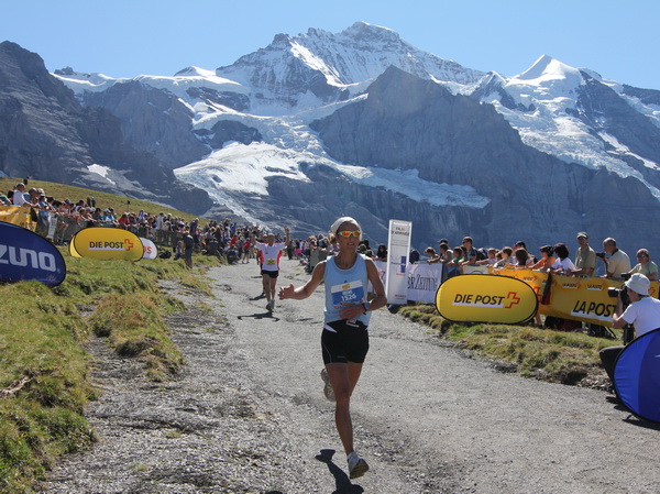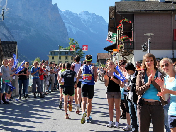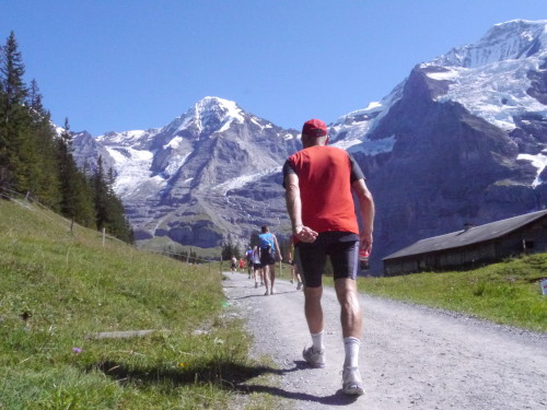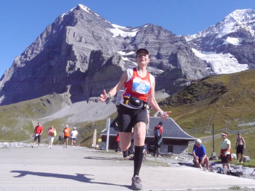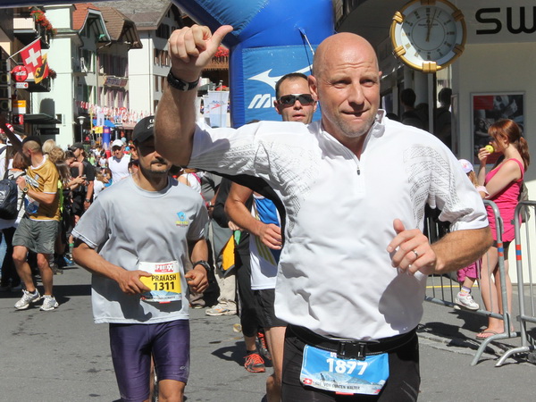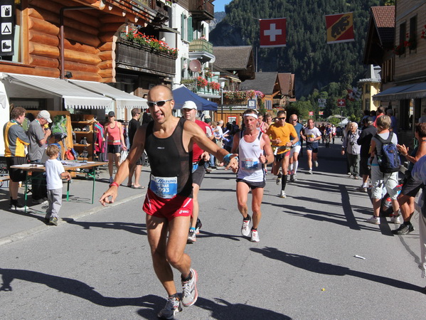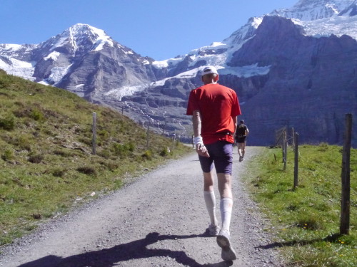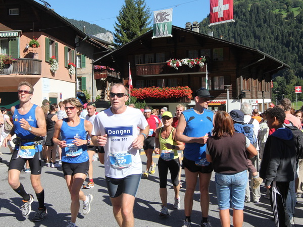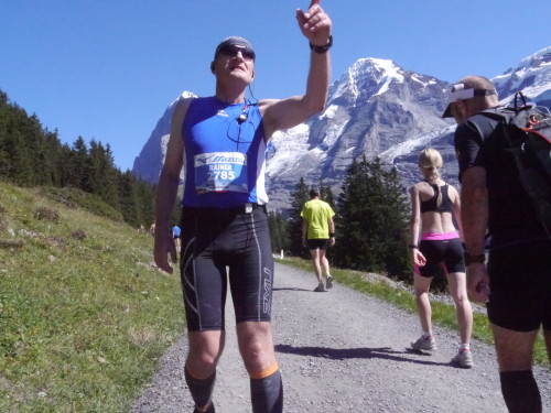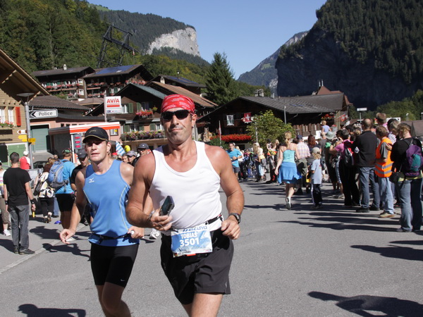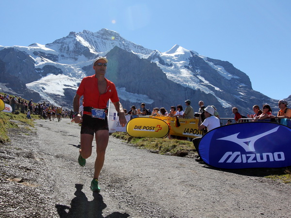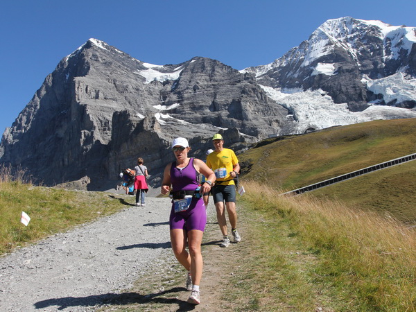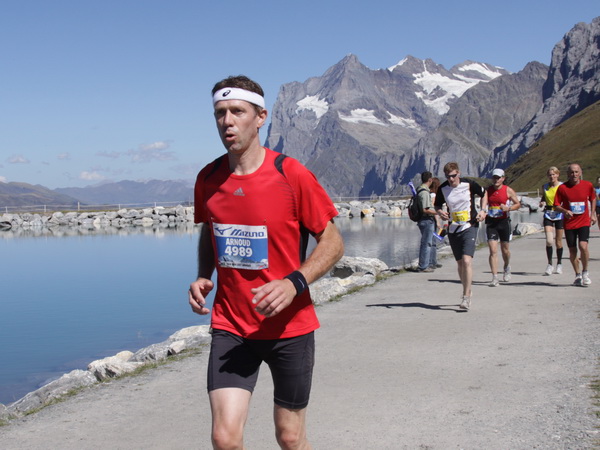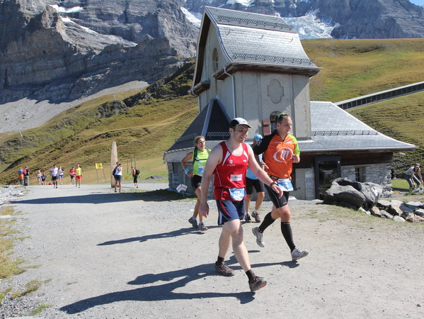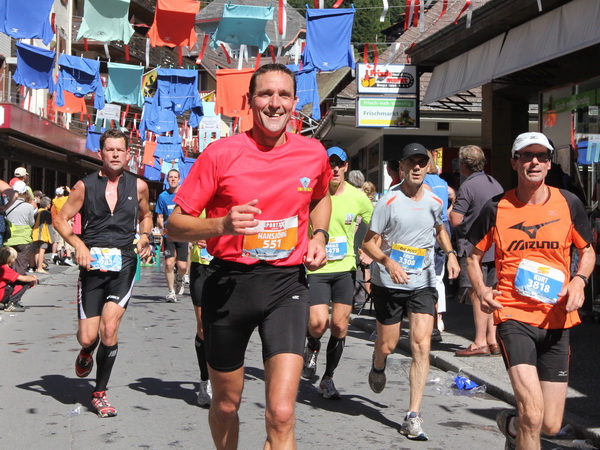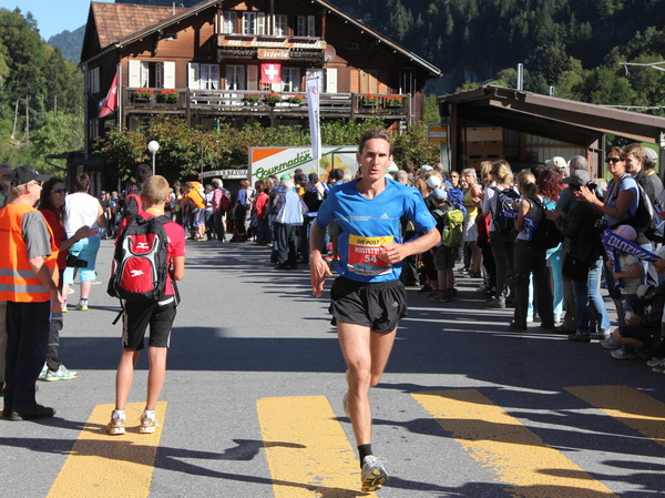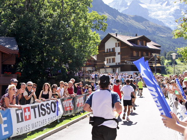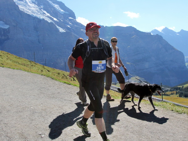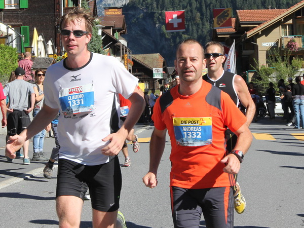 Der Weg ist breit und bequem. Malerisch liegen der See und die Kapelle in der Sonne. Die mächtigen Bergriesen Eiger, Mönch und Jungfrau bilden eine traumhafte Kulisse. Km 42 – noch 195 Meter. Ich will noch ein paar Fotos schießen – keine Chance. Rolf packt mich an der Hand und zusammen rennen wir ins Ziel. Ich hab‘s geschafft. Mit Hängen zwar, aber ohne Würgen.