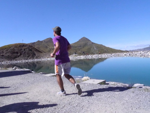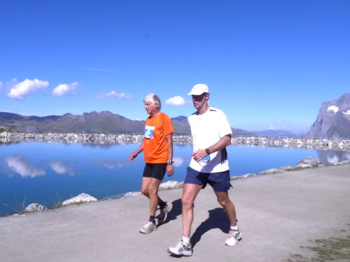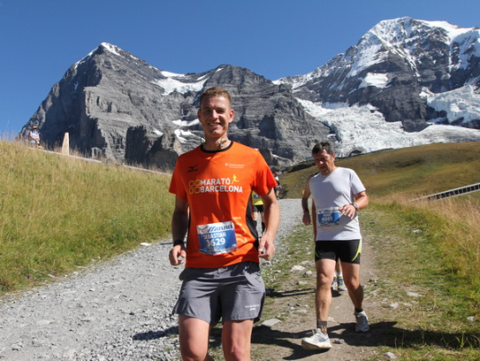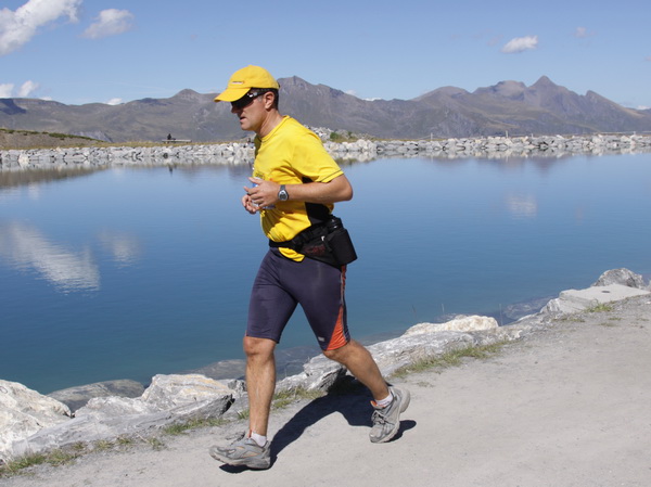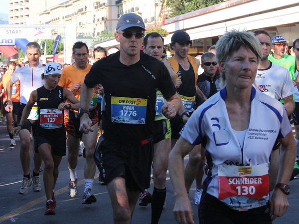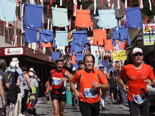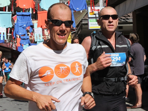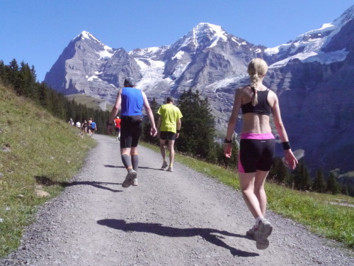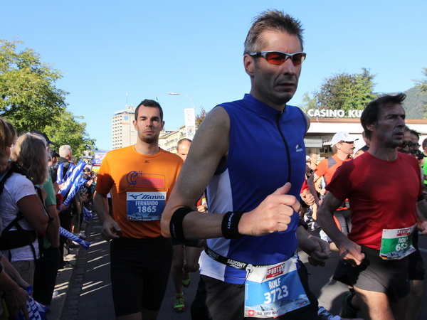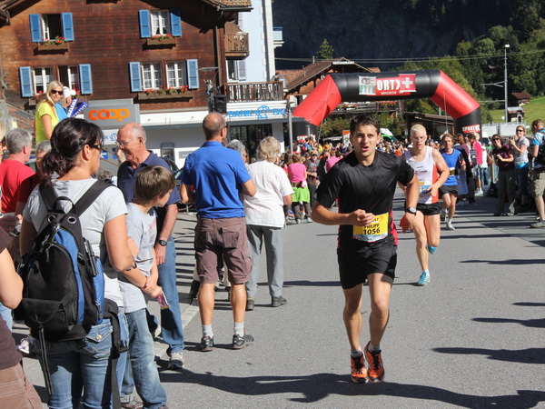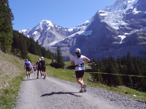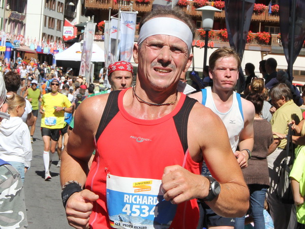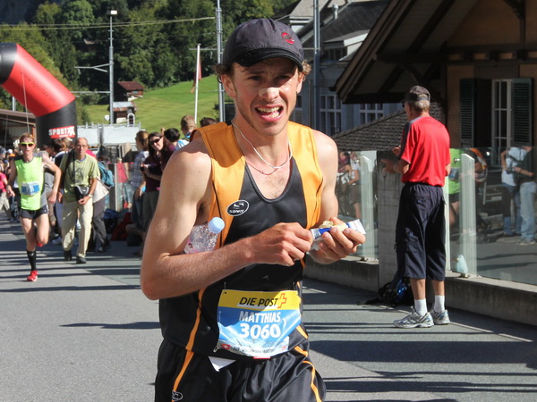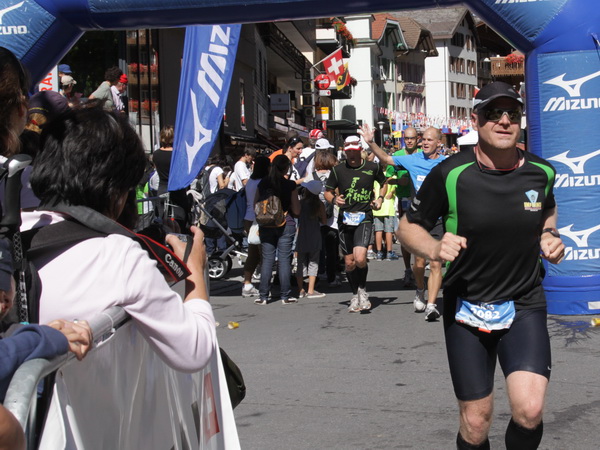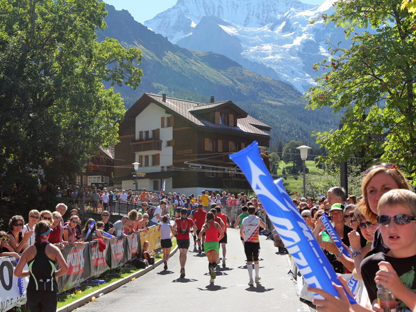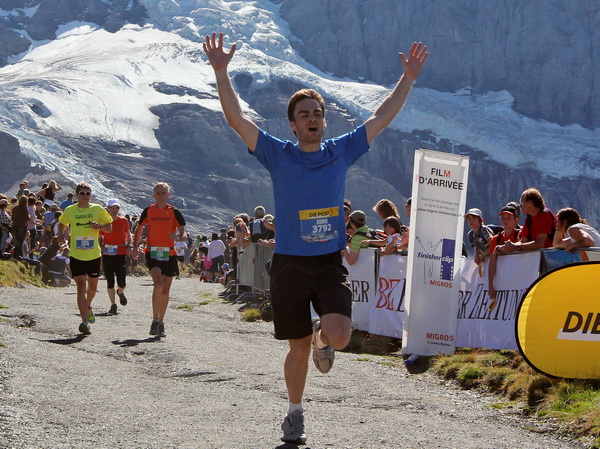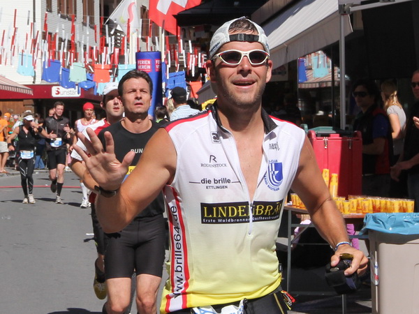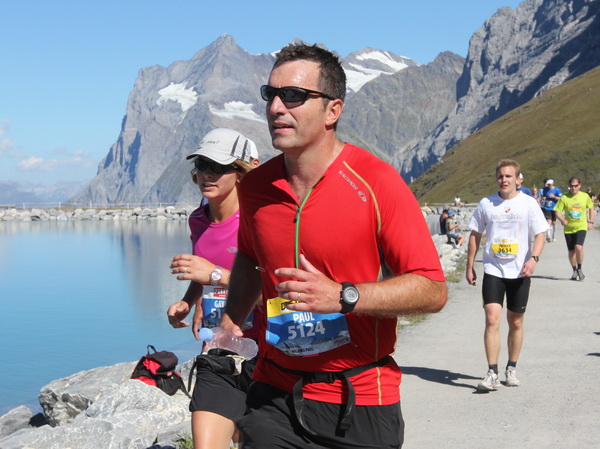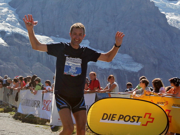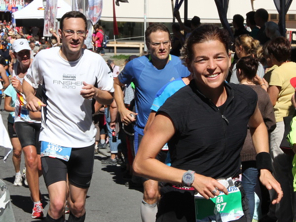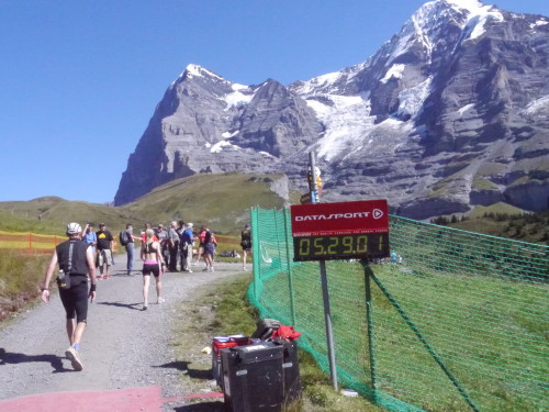 Der Weg ist breit und bequem. Malerisch liegen der See und die Kapelle in der Sonne. Die mächtigen Bergriesen Eiger, Mönch und Jungfrau bilden eine traumhafte Kulisse. Km 42 – noch 195 Meter. Ich will noch ein paar Fotos schießen – keine Chance. Rolf packt mich an der Hand und zusammen rennen wir ins Ziel. Ich hab‘s geschafft. Mit Hängen zwar, aber ohne Würgen.