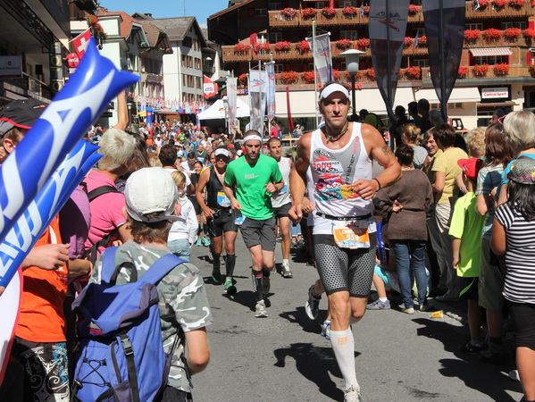 Beim Wixi (1830 m – km 38) springt die digitale Zeitanzeige gerade auf 5:29 – 6 Minuten hätte ich noch Zeit gehabt. Glück gehabt. Ich bin nicht nur im Zeitlimit, sondern auch so gut beieinander, dass es mir vor der Moräne nicht graust. Im Gegenteil. „Ich laufe weiter“, ruft mir Heinz zu. Zuvor hat er sich noch von seiner Frau pampern lassen. Ein Stück geht es abwärts. Gut so, laufen, Beine lockern und sich an der Verpflegungsstelle stärken.
