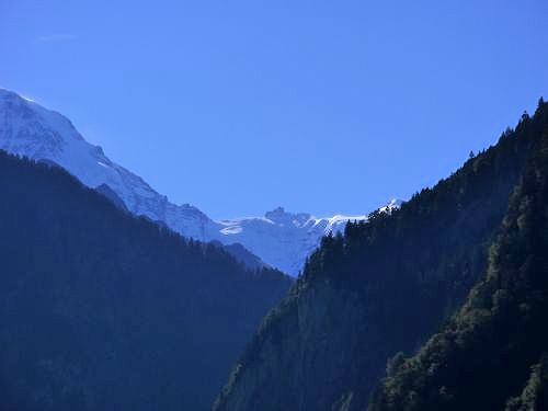 Es geht mir gut. Ich fühle mich prächtig, der fünfzigste macht richtig Spaß. Das Panorama ist atemberaubend. Im Hintergrund des Lauterbrunner Tal grüßen schneebedeckte Berge vor blauem Himmel, rechts fällt der Staubbachfall 297 m herunter und links grüßt der Steilaufstieg nach Wengen.