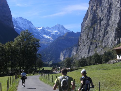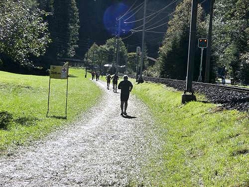 Ich muss unmittelbar vor Lauterbrunnen den Akku meiner Kamera wechseln. Dabei hat sich leider irgendetwas an der Kamera verstellt und ich hab richtig Probleme mit der Kamera. Kaum ein Foto wird noch was. Viele Bilder werden unscharf und sind total überbelichtet. Ich bin stinksauer. Ich laufe meinen Lieblingsmarathon in grandioser Landschaft bei bestem Wetter und kann dies nur völlig unzureichend in Fotos festhalten. Warum jetzt, hier und heute? Ich bitte an dieser Stelle um Nachsicht, ich ärgere mich selbst am meisten.