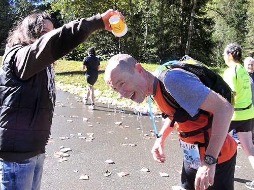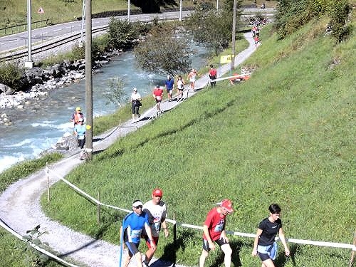 In den Serpentinen treffe ich die m4y-Schreiberkollegen Bernd Neumann und Wolfgang Schwabe. Unmittelbar vor dem Aufstieg sehe ich Renate Wirtz, mir aus Davos vertraut. Sie kämpft um eine gute Platzierung in ihrer Altersklasse im Marathon-Mountain-Cup.