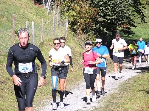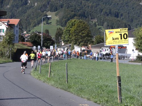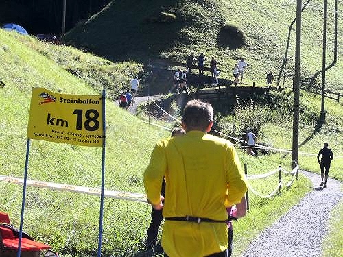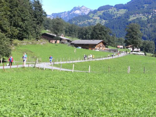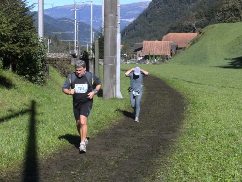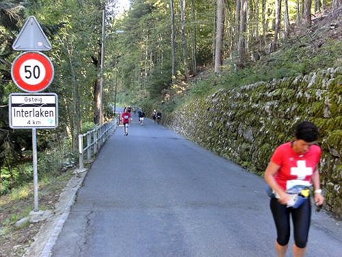 Die erste Steigung hinauf nach Gsteigwiler nehme ich gehend. Nur keine Körner verschenken. Man verliert kaum Zeit gegenüber einen Bergauf laufen wenn man schnell geht. Man kann aber später viel Zeit verlieren wenn man Körner zu früh auf der Strecke gelassen hat.