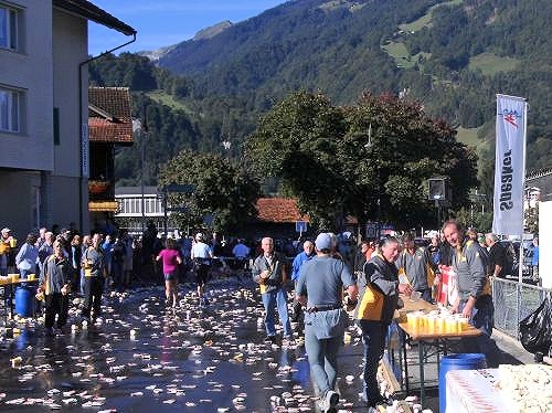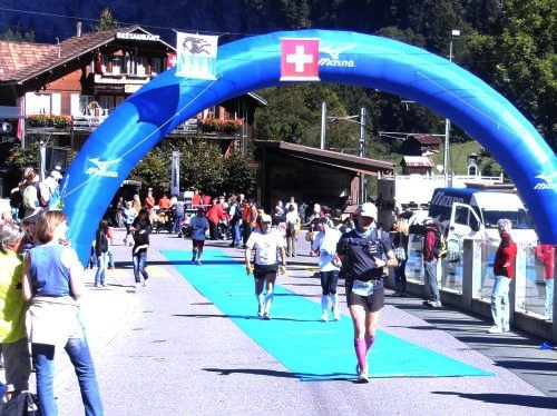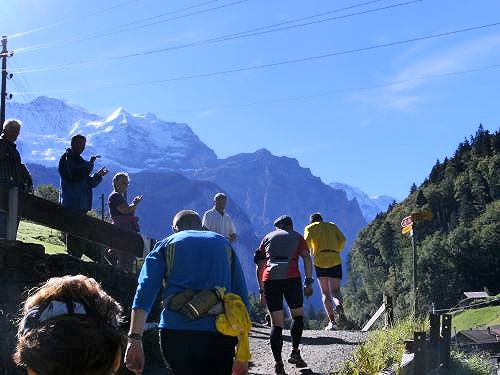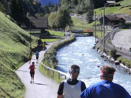 In Lauterbrunnen ist Stimmung pur. Ein Sprecher nennt die Läufer beim Namen und begrüßt auch mich. Da lasse ich mich nicht lumpen, greife mir das Mikro und begrüße Lauterbrunnen. Zudem verweise ich auf den Bericht auf marathon4you.de. Mit Applaus werde ich verabschiedet.