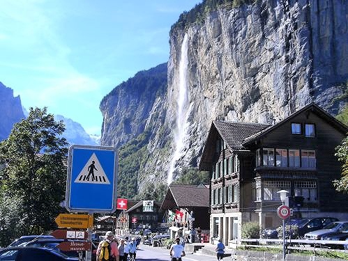 Noch einmal geht’s vorbei an Camping Jungfrau, diesmal an der anderen Seite des Platzes. Wieder in Lauterbrunnen angekommen geht es nach rechts ab und hinauf.