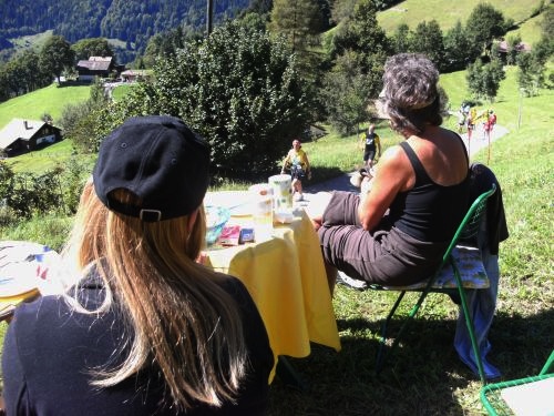 Das sagen sich auch Mutter und Tochter, die auf Stühlen im Gras vor Wengen sitzen und ein zweites Frühstück genießen, während die Läuferschar vorbeizieht.