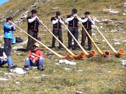 Ich werde rechts um die Wyssi Flue geleitet und freue mich schon auf Haaregg. Hier ist nicht nur wieder eine Verpflegung, hier stehen traditionell Fahnenschwenker und Alphornbläser. Ein Genuss für Augen und Ohren. Einer meiner persönlichen Höhepunkte der Strecke.