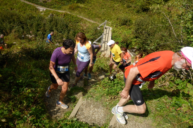 Ich höre später von vielen Teilnehmern, dass sie mit dem ungewöhnlich warmen Wetter heute Probleme hatten, aber Berglauf-Weltmeisterin Martina Strähl stellt trotzdem einen neuen Streckenrekord auf (3:19.15,2). Bei den Männern dagegen bleibt nach wie vor der Rekord von Jonathan Wyatt aus dem Jahr 2003 (2:49:02 Stunden) bestehen.