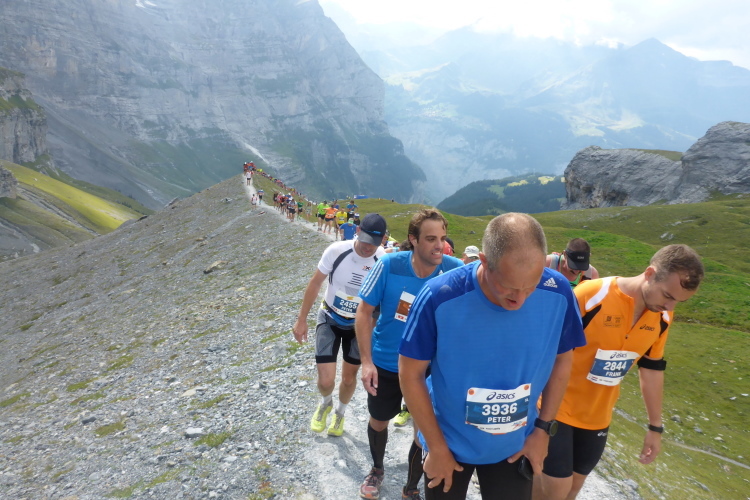 Bei seiner Premiere 1993 war dies der erste Marathon in den Alpen mit Start im Tal und Ziel auf dem Berg. Schon damals erreichten mehr als 1500 Teilnehmer das Ziel. Seit vielen Jahren starten bei dem immer frühzeitig ausgebuchten Marathon mehr als 4000 Menschen aus der ganzen Welt. 1829 Höhenmeter bergauf und 305 Höhenmeter bergab, daran hat sich seither nichts geändert. Etwas gab es bei meinem ersten Start noch nicht: Startnummernausgabe, Pasta- und Finisherparty finden nun im großen Zelt eines Tourneetheaters statt, idealerweise mit dem eisbedeckten Jungfraugipfel im Hintergrund.