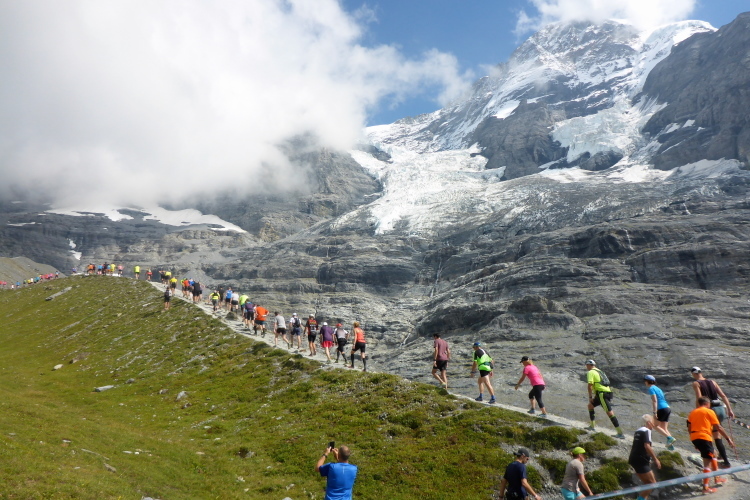 Vor einigen Wochen hing ein eisiges Damoklesschwert über der Streckenführung. Ein großes Stück eines Hängegletschers am Eiger drohte abzubrechen. Einige gefährdete Wanderwege wurden vorsorglich gesperrt. Für den Jungfrau-Marathon hätte es dann eine Alternativstrecke ohne die Moräne gegeben. Zum Glück stürzten die etwa 20.000 Kubikmeter Eis aber bereits Ende August ab.
