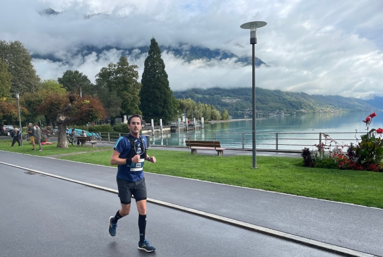Trotz der hohen Kapazität der Bahn muss ich 20 Minuten warten, bis ich eine der großen Gondeln betreten darf. Endlich kann ich mich setzen und die atemberaubende Aussicht genießen, sobald wir unter die Wolkendecke kommen. Unten im Grindelwald Terminal erwartet uns noch eine kleine Marathonmesse. Das Parkhaus, in dem wir auch unsere Kleiderbeutel erhalten. hat man zu Duschen (das Wasser ist noch warm!) und Umkleiden umfunktioniert. Dann geht es mit der Bahn an der schwarzen Lütschine entlang zurück nach Interlaken.