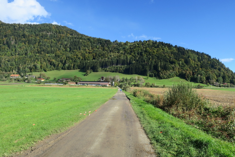 Helmut ist diesmal nicht mehr an der Labe beim Gasthaus Laggner anzutreffen, er scheint schon unterwegs am Schotterweg entlang des Bleistätter Moors zu sein. Ich komme nun zum vierten Mal bei einem einsamen Gehöft vorbei. Der alte Mann um die 80 sammelt noch immer Fallobst mit Kübeln ein. Ich frage ihn, ob er die vielen Birnen zum Mostpressen verwenden würde. Er verneint und antwortet, dass daraus Medizin hergestellt werde. In meiner Jugend nannte man die roten Nasen der Männer auch Schnapsnasen.