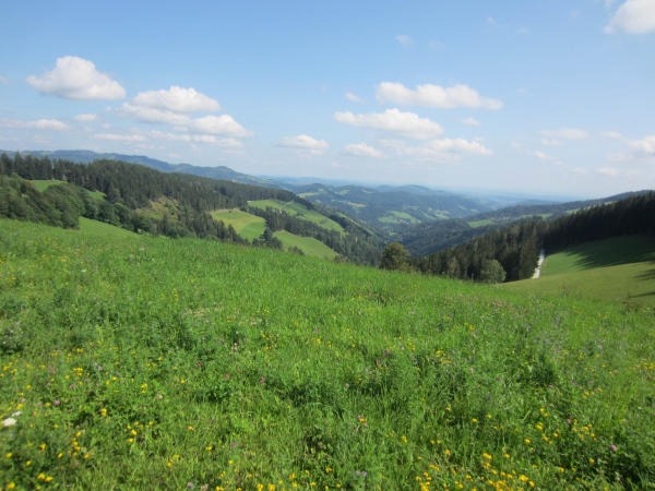 Die nun folgende Trail verläuft durch den Wald und auf Almboden entlang der berühmten Lipizzanerweide mit Blick auf das obere Kainachtal. Zwar sehe ich die Pferde nicht auf der Strecke, doch man weiß, dass die Lipizzaner während des Heranwachsens dreimal den Sommer in den Bergen auf saftigen Wiesen in unberührter Naturverbringen - die Stuten auf der Brendlalm und die Hengste auf der Stubalm in 1500m Seehöhe. Diese Alpung ist ein wichtiger Abschnitt in der Aufzucht der Lipizzaner. Durch die teils steilen Hänge der Almen erlangen sie die notwendige Trittsicherheit und trainieren Sehnen und Gelenke. In Wien spaziere ich oft bei der Spanischen Hofreitschule vorbei, die edlen Pferde werden in den Stallungen gehegt und gepflegt.