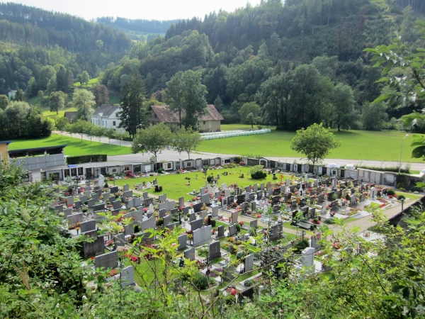Die Uhr zeigt 16.06 als ich die 42km-Markierung passiere, die sich knapp vor der Ortstafel von Kainach befindet. Nun folgt die von den Läufern gefürchtete Friedhofsschleife, die erneut aufwärts und erst auf dem letzten Kilometer hinunter am Friedhof vorbei in den Ort führt.