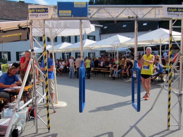 Für die ca. 2,4 km brauche ich 22 Minuten. Als ich mit 7:28 durchs Ziel laufe, begrüßt mich der Platzsprecher und sagt, dass ich ins Klassement komme – wie eine Handvoll andere Läufer hinter mir. Letzte und Erste in ihrer Altersgruppe W-60 wird eine Frau mit 8:21 Stunden.