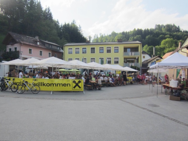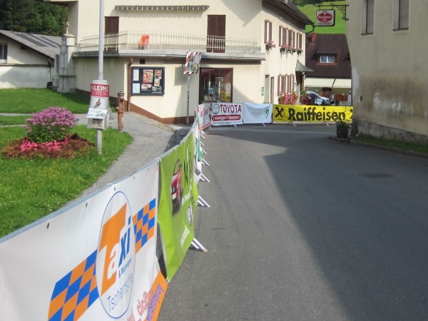 Ich freue mich auf die in den Ort Kainach hinunterführende Asphaltstraße, auf der ich voriges Jahr etwas Zeit gut machen konnte. Als ich zur Labestelle komme, applaudieren die Helfer, Kinder schwenken Ballons und zeigen sich in Jubelpose. Ich bedanke mich und merke an, dass ich die verbleibenden 9 km kaum in einer Stunde schaffen werde. Man entgegnet mir, dass die Zeitnehmung bis zum letzten Läufer in Betrieb ist, auch letztes Jahr habe man das so gehandhabt.