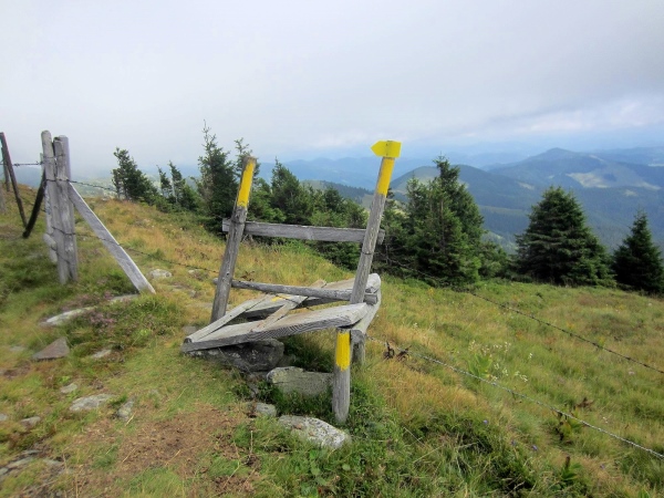 Die Aus- und Fernsicht ist grandios, die in Gelb markierten Tafeln des Lipizzanerweges sind auch für einige Wanderer auf der Strecke nicht zu übersehen. Ich frage im Spaß ein älteres mir entgegenkommendes Wandererpaar, wo es hier nach Graz gehe. Die Frau überzuckert den Gag und zeigt bewusst in die falsche Himmelsrichtung, wir lachen.