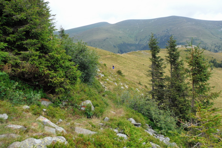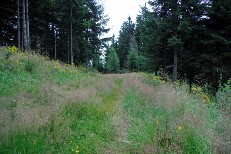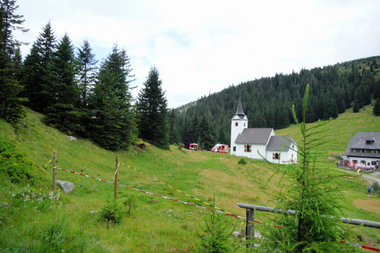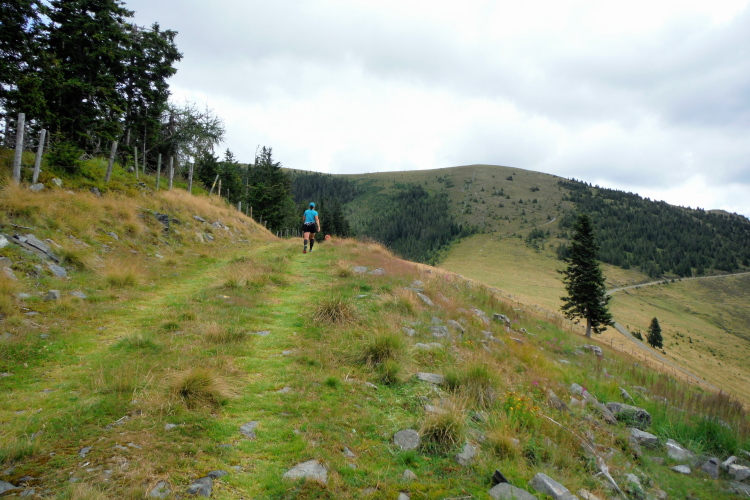 Der Streckenplan suggeriert einen gemütlichen Abstieg. Über die Kammwiesen und durch die beginnenden Wälder sieht es auch ganz danach aus. Was folgt, ist ein extremer Trailabschnitt hinunter zum Gleinalmschutzhaus. Ich bewundere die Läuferinnen und Läufer, die locker an mir vorbei springen. Schnell sind sie außer Sichtweite. Ein paar Mal haut es mich fast hin, wie man hier so schön sagt.