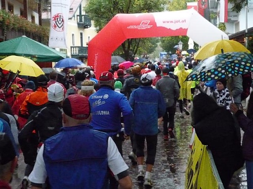 Im Jahr sechs der Tour führt der unvorhergesehene Wettersturz mit kurzfristigem Schneefall bis hinunter auf 1.000 m dazu, dass neben den freiwilligen Neuerungen bei den Rahmenläufen auch eine unfreiwillige hinzu kommt: Denn die Veranstalter entschließen sich, auch dem Kaisermarathon ein neues Gesicht zu verpassen. Zwei Tage vor dem Lauf wird im Internet ein modifizierter Einrundenkurs vorgestellt, der auf der ersten Hälfte identisch mit dem bisherigen ist und auf der zweiten die genannten “Problemberge” umkurvt. Erst vor Ort erfahre ich: Alles Makulatur. Der neue Kurs ist ein Dreirundenkurs mit Start und Ziel in Söll, jede Runde bietet stattliche 700 Höhenmeter, die bis nach Hochsöll und zum sogenannten “Hexenwasser” auf 1.234 m üNN hinauf und wieder hinab führen. Insgesamt sind also in etwa so viele Höhenmeter wie auf der Normalstrecke zu bewältigen. Meine erste Reaktion ist nur ein wenig begeistertes “hm”. Ein Scherzbold auf der Messe fragt, wo er seine Startnummer zurück geben kann.