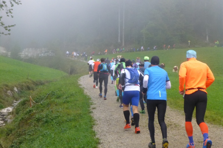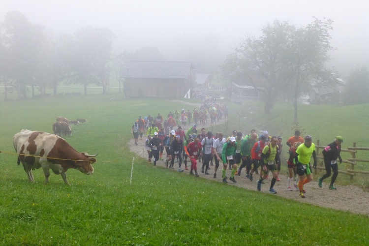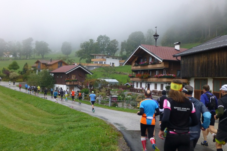 Zwei Mal war ich schon dabei – und ausgerechnet diese beiden Male ist die Formel nicht aufgegangen. 2011 war es ein vorwinterlicher Wettereinbruch, der, erst- und bisher einmalig in der Historie der Tour, dazu führte, dass der Kurs des „Herzstücks“, des Kaisermarathon, verlegt und kurzfristig sogar verkürzt werden musste. 2013 kam ich auf dem Originalkurs immerhin bis km 38,5, ehe es hieß: Das war`s dann mal. Die berüchtigte finale Steilpassage zum Gipfel der Hohen Salve mit 700 Höhenmetern war infolge intensiver himmlischer Bewässerung derart verschlammt, dass ihre läuferische Bewältigung den Organisatoren als nicht mehr zumutbar erschien. Man könnte also sagen: Da hatte ich noch eine Rechnung offen.