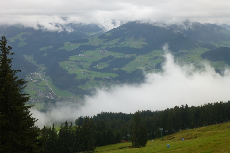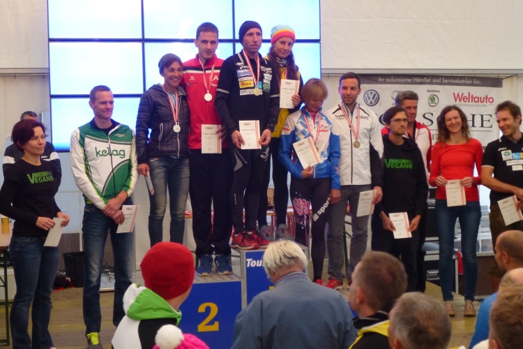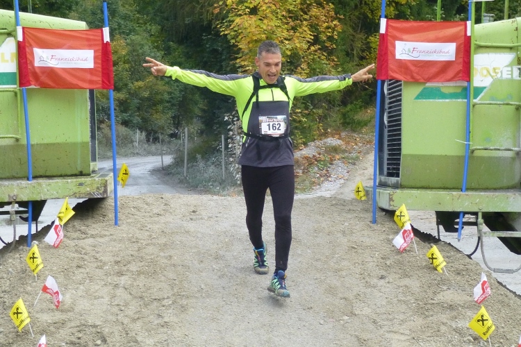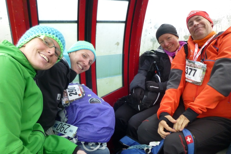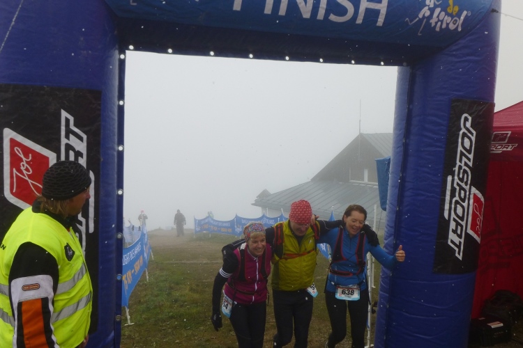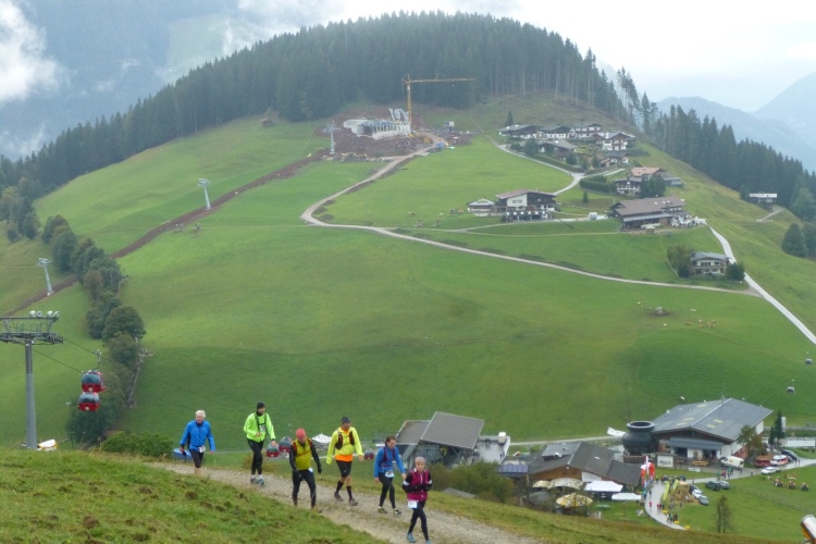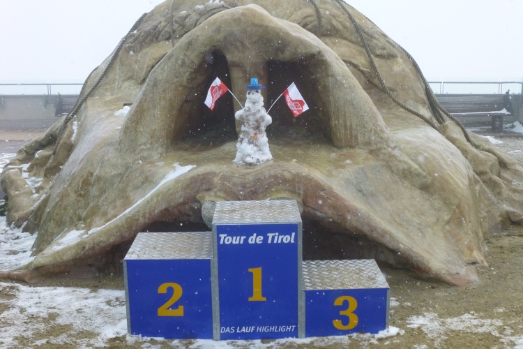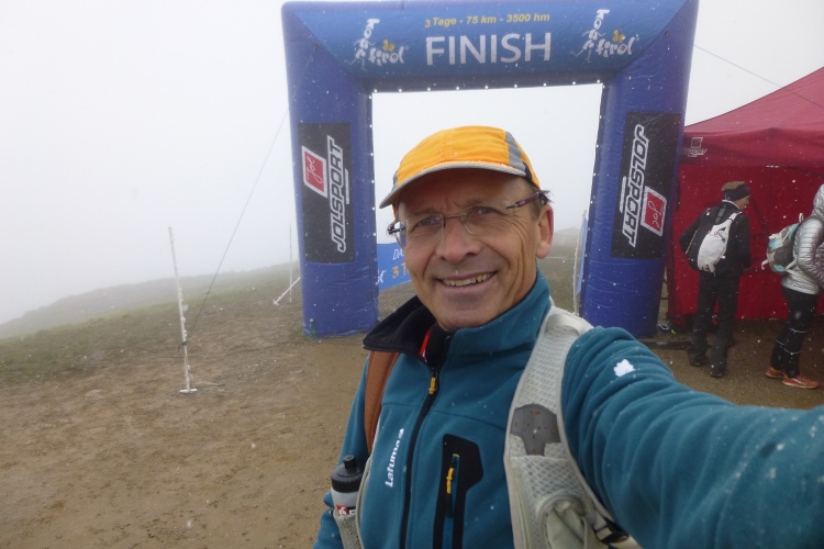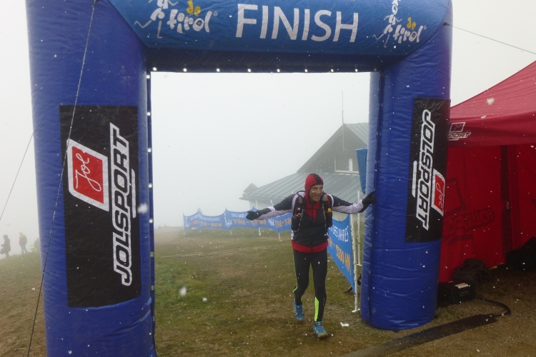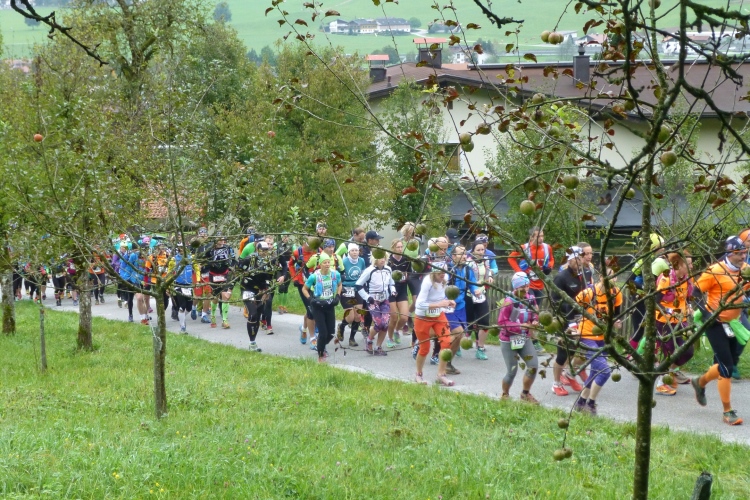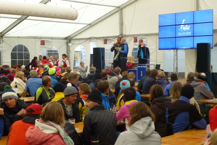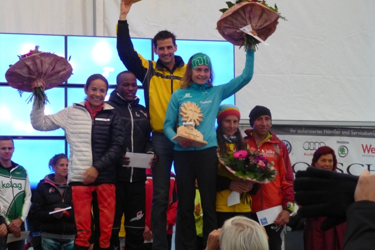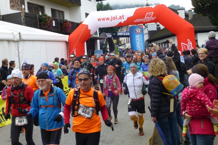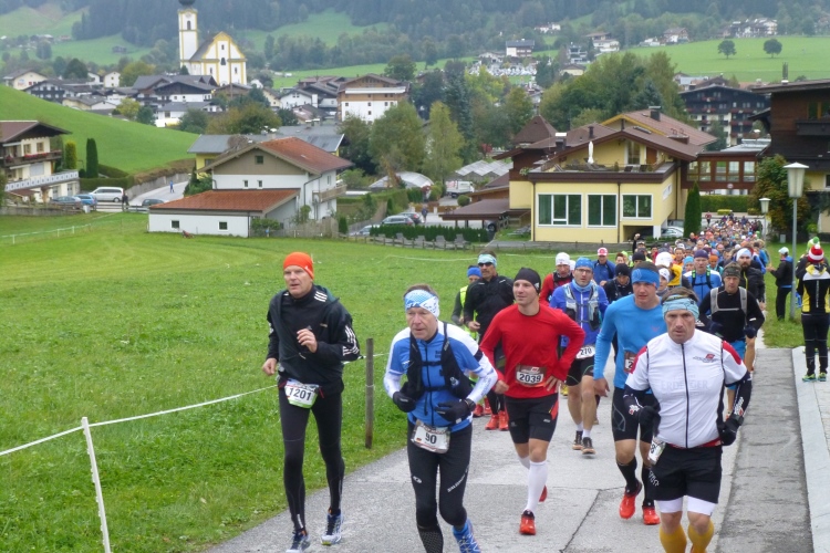Es ist geschafft, endlich, im dritten Anlauf. Wenn auch zum dritten Mal fern jeglichen goldenen Oktobers. Kaum ansatzweise erahnen ließ sich, welch schönes Panorama diese Strecke bietet. Tja, da hilft wohl nur eines: Wiederkommen und hoffen …Zusammen mit einem netten Trupp von Laufreisen.de kommt in der geschützten Gondel bergab aber sogleich wieder Stimmung auf. Und die setzt sich im Festzelt in Söll fort, wo, quasi nach dem berühmten gallischen Vorbild, bei Speis und Trank nachgefeiert und die vielen Altersklassensieger gekrönt werden. Wie nicht anders zu erwarten lief es für Patrick Wieser am besten. Erst auf den letzten Kilometern konnte er den lange führenden Henry Kemboi abhängen und mit 3:28 Std. die Tagesbestzeit der knapp 600 Finisher einfahren.