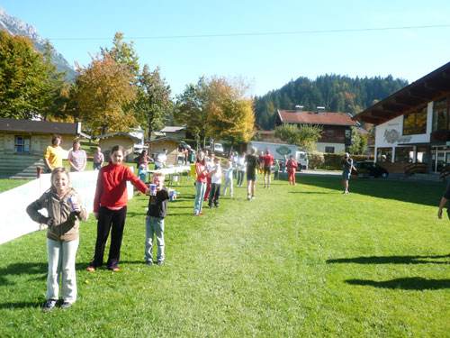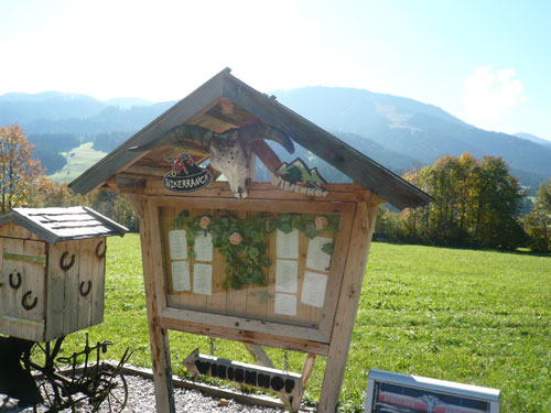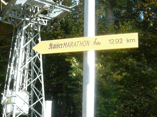 Auf der kompletten Strecke fallen mir immer wieder die detaillierten und permanent installierten Kilometerschilder aus Holz auf. Das hat einen einfachen Grund. Als ganz besonderes Schmankerl bietet das Tourismusbüro Söll allen die Möglichkeit an, zu jeder Zeit den Kaisermarathon abzulaufen oder -wandern. Im Infobüro Söll kann man sich eine Streckenkarte mit Stempelbuch abholen. Diese muss man an zehn eingerichteten Stellen (Cafés, Almen etc.) abstempeln lassen und als Belohnung bekommt man dafür sogar noch ein kostenloses Kaisermarathon Finisher T-Shirt. Tolle Sache finde ich und wer nach meinem Bericht Lust darauf hat, der kann durchaus mal in Erwägung ziehen einen Urlaub in Tirol zu verbringen.