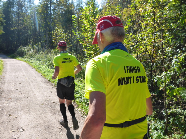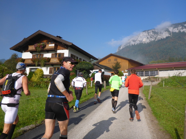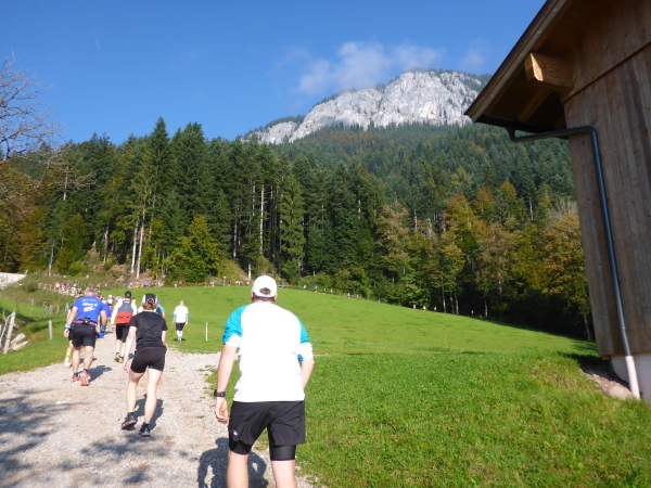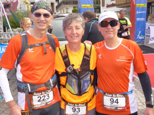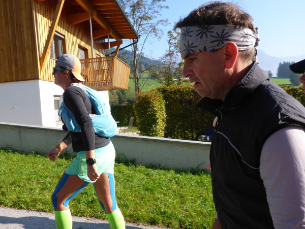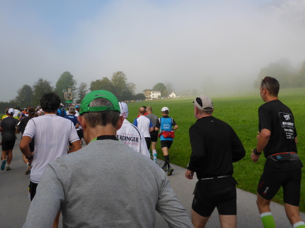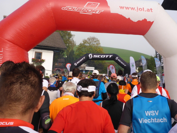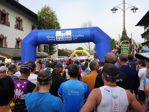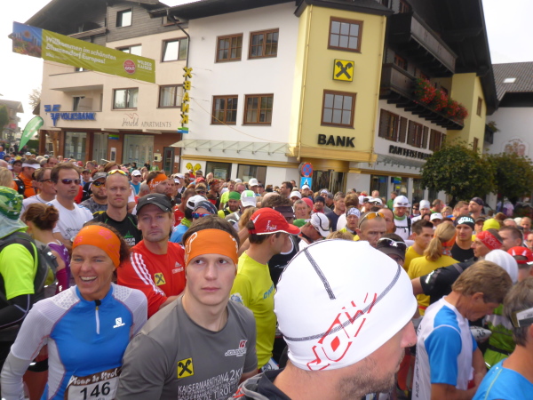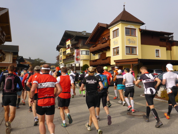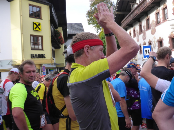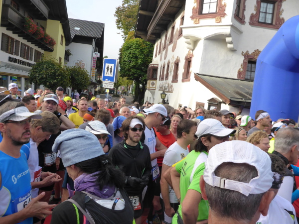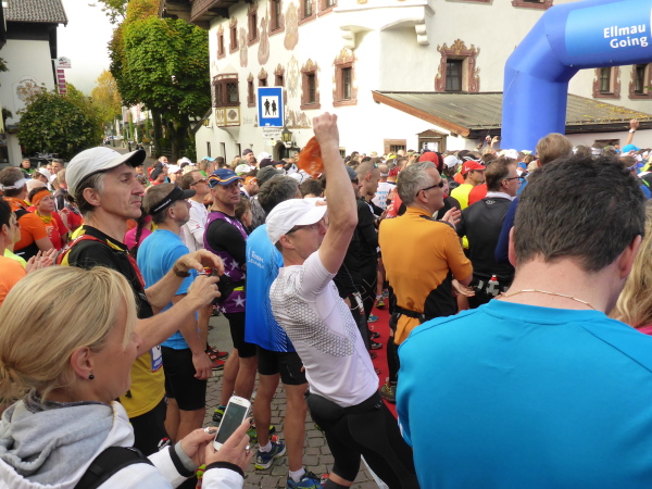 Mit dem Luxus einer Herberge gleich um die Ecke, können wir uns am Morgen Zeit lassen. Jetzt ist auch Marathon4you-Kollege Bernie mit von der Partie. Der Ärmste ist leicht angeschlagen und wird daher nur den Marathon bestreiten. Die Tasche mit Wechselkleidung ist schnell abgegeben. Sie wird zum Ziel auf die Hohe Salve gebracht. Heute ist das Briefing naturgemäß etwas umfangreicher. Auf der Videoleinwand können wir Strecke und Höhenprofil begutachten. Mit Spannung erwarten wir den Countdown zum Start. Die Startatmosphäre ist einmalig. Mit dem Wissen, dass das heute kein Spaziergang wird, sind die Emotionen noch ausgeprägter als gestern. Die Ansagen und die Musik tun ihr übriges. Wir wollen laufen!