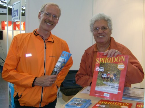 Am Samstag hole ich die Startunterlagen in den Essener Messehallen ab. Hier gibt es auch eine große Marathonmesse auf der man über den neuesten Stand der Laufprodukte informiert wird. Die Informationsflut ist groß und zusammen mit den Messerabatten und Sonderangeboten verlockend. Hier treffe ich auch Manfred Steffny an seinem Stand. Der Herausgeber des Laufmagazins Spiridon ist sicher einer der besten Kenner der deutschen Laufszene.