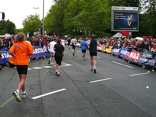 Mitten im Startfeld interviewt ein Team von WDR3 Frank Busemann. Er ist ja das Aushängeschild des Karstadt Marathon und macht bereits zum vierten Mal den Marathon-Botschafter. Der sympathische ehemalige Zehnkämpfer kommt ja auch aus der Region und genießt als Olympiazweiter immer noch viel Respekt hier. Auch andere Promis sind am Start. So zum Beispiel Boxer Sven Ottke beim Halbmarathon und Eisschnellläuferin Gunda Niemann-Stirnemann beim Inlineskating. Am Nachmittag wird der WDR eine einstündige Zusammenfassung von dem Ereignis senden.
