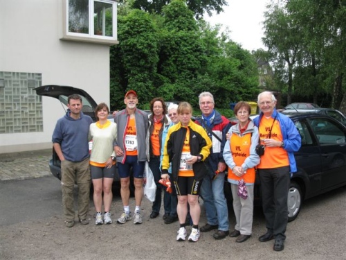 Auch eine Neuerung ist es, dass man nicht heute schon die Wechselkleidung für den Zielbereich abgeben muss. Das kann man morgen im Startbereich erledigen und die Kleidung wird dann in den Zielbereich befördert. So ist das auch viel angenehmer. Die Teilnehmergebühren schwanken je nach Anmeldezeitpunkt zwischen 39 und 75 Euro. Dafür erhält man laut Ausschreibung neben der Finisher-Medaille ein Funktionsshirt, Garderobentransport, umfangreiche Zielverpflegung und ausreichende Verpflegungsstationen auf der Strecke sowie einen Massagedienst im Zielbereich. Natürlich ist die Strecke amtlich vermessen, jeder Kilometer wird angezeigt, und die Startnummer gilt als Fahrtausweis am Veranstaltungstag im gesamten Verkehrsverbund.