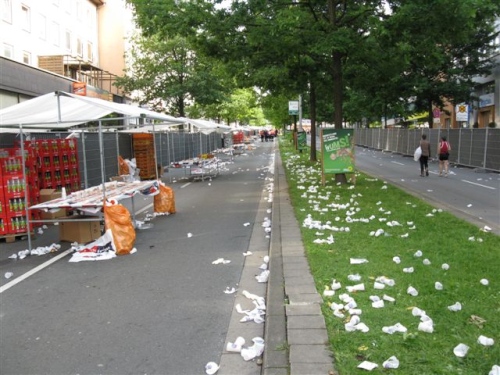 Meine Startunterlagen kann ich schon am Freitag in der Essener Stadtmitte abholen. Für die Marathonmesse hat man eigens ein Messezelt errichtet und es werden keine Parkgebühren erhoben. Gab es in den Vorjahren immer großzügig Taschen oder Rucksäcke, so reicht in diesem auch ein einfacher Plastikbeutel. Der Sponsor befindet sich auch in wirtschaftlichen Schwierigkeiten und muss sparen. Die Messestände bieten auf 2500 Quadratmetern die üblichen Angebote und heute gibt es auch noch Messerabatt.