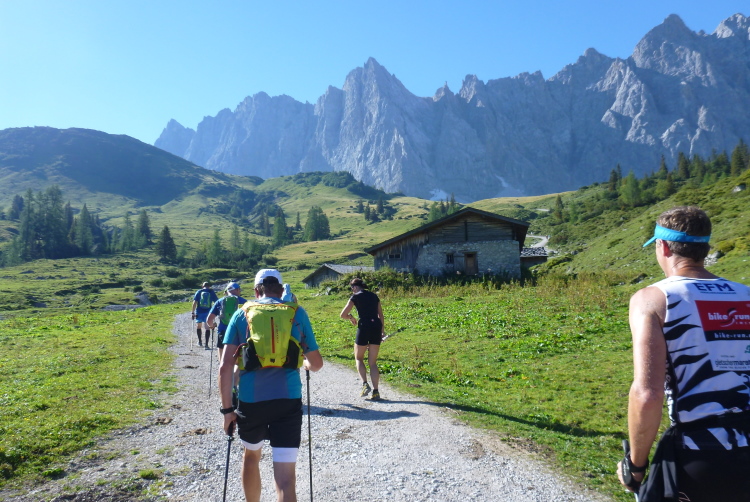 Der vor allem als Erschließer des Karwendels bekannte Rechtsreferendar Hermann Freiherr von Barth bestieg im Sommer 1870 fünfundzwanzigjährig als Alleingänger 88 Gipfel (zwölf davon erstmals). Zahlreiche nach ihm benannte geographische Objekte belegen seine Verdienste um die Erschließung der Nördlichen Kalkalpen. Ein Denkmal hat man ihm am Kleinen Ahornboden gewidmet. Vielleicht kommt ja irgendwann einmal auch eines für die Geschäftsführer der beiden Veranstalterregionen, Martin Tschoner (TVB Achensee), und Markus Tschoner (Olympiaregion Seefeld), die uns den heutigen Tag ermöglichen, dazu. Verdient hätten sie es.