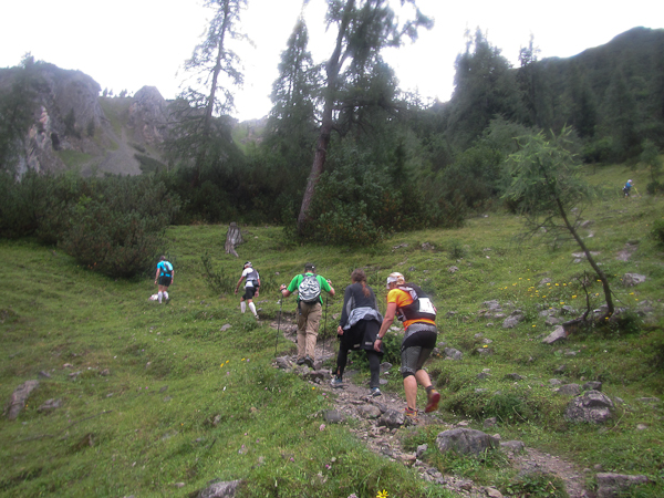 Wir selbst ernannten Individualisten treffen hier auf "müde“ Menschenmassen und ihre „müden“ Vergnügungen wie: mit dem Auto ins Naturschutzgebiet fahren, dort den Bauch voll hauen, kurz in die Runde schauen, über uns Läufer den Kopf schütteln und dabei über ihre eigenen Zipperlein jammern. Am Ende des Tages werden sie noch vor uns unten am Achensee sein und erneut über uns den Kopf schütteln. Sie sitzen dann bei einem kühlen Bier und erleichtert werden sie feststellen, wie anstrengend doch der Tag war und wie müde die frische Luft in der Natur macht.