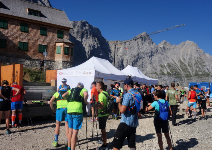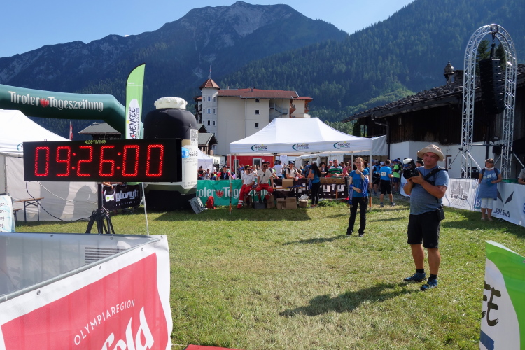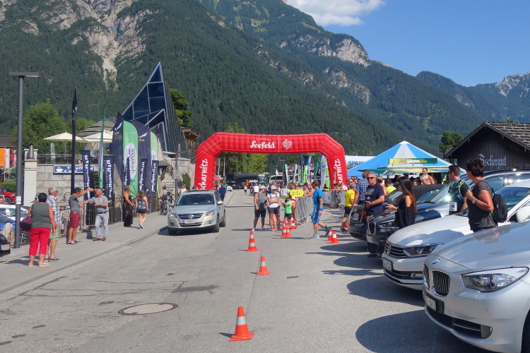 Von meinem Urlaubsdomizil in Krün habe ich es am Freitag nicht weit nach Scharnitz. Es geht einmal von kurz vor der Grenze direkt hinter die Deutsch-Österreichische Grenze. Freitags gibt es in Scharnitz schon die Startnummern beim Parkplatz Länd P2 an der Hinterautalstraße von 11.00 bis 19.00 Uhr, am Samstag von 04.00 bis 05.30 Uhr. Nachmeldungen wären möglich, sofern das Teilnehmerlimit von 2.500 noch nicht überschritten ist. Ist es aber, der Lauf ist ausgebucht. Früh am Vormittag ist noch nicht viel los und ich habe rasch meine Startnummer. In diese ist ein Chip zur Zeitmessung integriert.