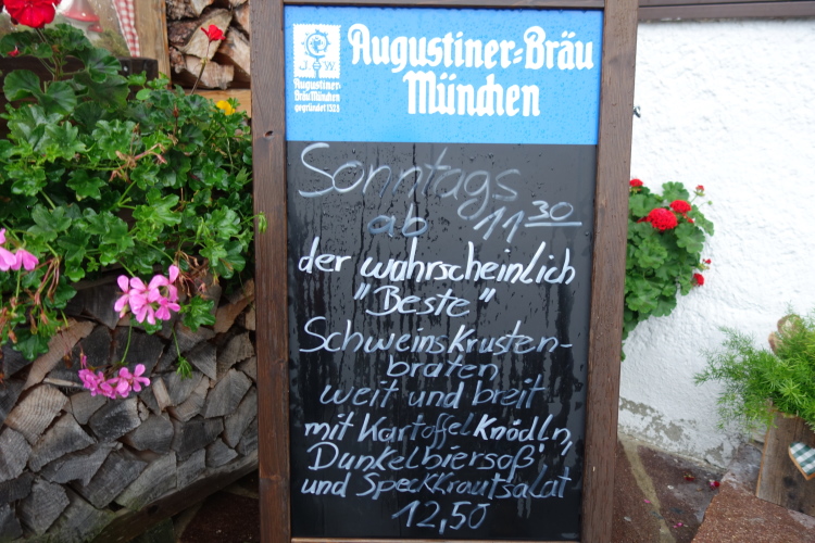 Am späten Nachmittag toben dann über dem Karwendel die vorhergesagten Gewitter. Am Sonntag belohne ich mich für das erfolgreiche Finish mit dem besten Krustenbraten weit und breit. Es geht in die Steirer Stubn in Krün. Tipp: Nicht nur Plätze reservieren, sondern unbedingt auch den Krustenbraten! Sonst kann man dort zwar sitzen, bekommt aber keinen Braten mehr.