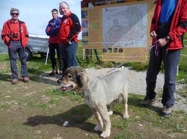 Wir lassen es uns gut gehen. Die Bergwacht hält ein wachsames Auge auf die Schlemmerrunde. Sogar der Bergrettungshundenachwuchs ist schon dabei. Wobei der „Kleine“ wohl auch gerne eine Wurst hätte.