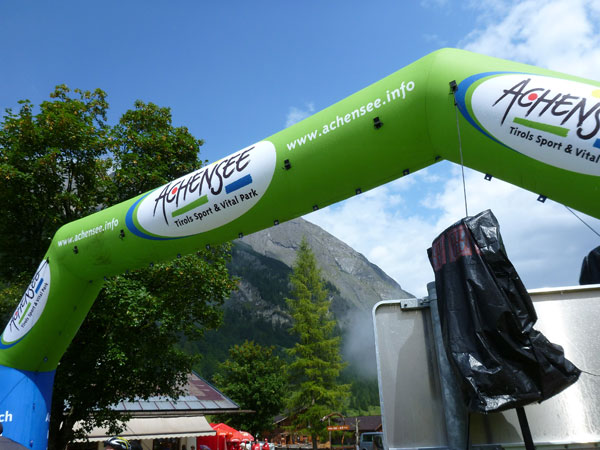Zwei Kilometer vor dem Ziel liegt der Achensee im Visier. Der Ortsdurchlauf durch Pertisau zieeeht sich noch dahin, aber angefeuert von fast jedem Anwohner oder Tourist am Wegesrand ist das kein Problem mehr. Meine eigene Zeit- und Geschwindigkeitsmessung ist bereits nach 10 km ausgestiegen (Speicher voll & Batterie leer). Die ahnte wohl was heute rauskommt, so bleibt mir der grauenvolle Blick auf meine Endzeit erspart. Aber wen interessiert eigentlich bei so einer herrlichen Strecke so eine Nebensächlichkeit.