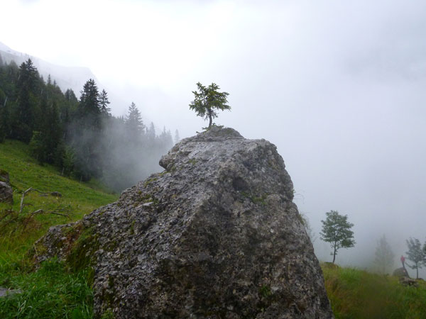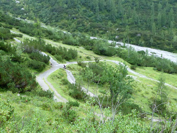 Ich halte mich diesmal nur kurz auf. Zwei Kilometer geht es nochmals kräftig abwärts, dann geht der Kurs in angenehmes Gefälle über. Die letzten 10 km lasse ich es laufen, ich habe heute so viel rumgetrödelt. Mich aus-, an- und umgezogen, jetzt möchte ich mal ein längeres Stück ohne Fotostopp durchlaufen. Auch gezwungenermaßen, an meiner Kamera ist die Linse angelaufen. So rausche ich in einem Rutsch durch bis Pertisau. 450 negative Höhenmeter beinhaltet der flachere Schlussabschnitt.