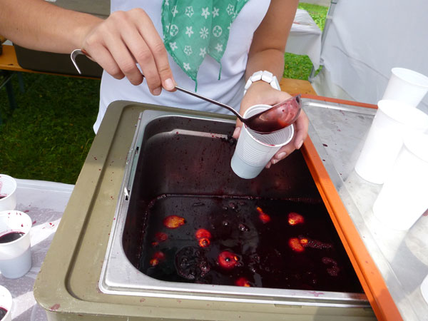 Ich mache es mir auf einer Bierbank bequem und packe aus meiner Vollaustattung trockene Klamotten aus und die Regensachen dafür ein. No risk, no fun. Es sieht so aus, dass es schön bleibt. Der Aufenthalt hat mir zwar eine halbe Stunde Zeitverlust eingebracht, aber ich werde dafür sommerlich und trocken meinen Weg fortsetzen.