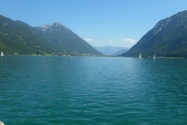 Ich würde ja jetzt gerne in den wunderschönen Achensee hüpfen, aber Judith nimmt mich zu den (warmen) Duschen bei der Tennishalle mit.